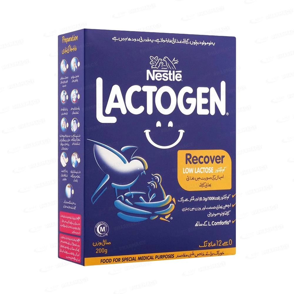 Preparation: Mix the prescribed amount of LACTOGEN RECOVER 200GM with warm water or milk as directed.